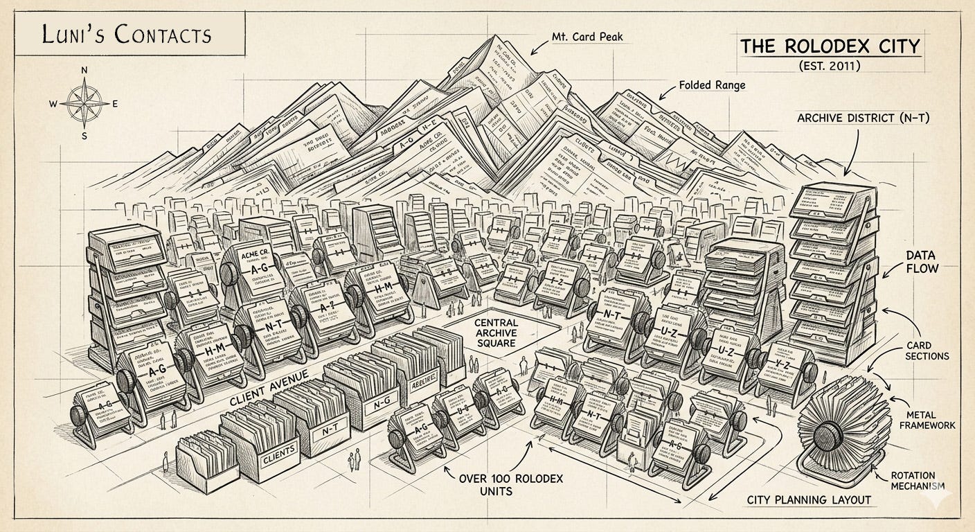 I suspect you don’t make quite this many connections per year, but my opening question remains… how do you keep track of the people you’ve met and the people you want to keep talking to?