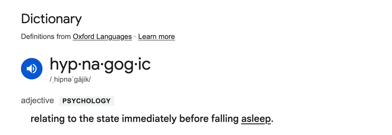 Decades ago, before smartphones, I used to keep a small pad of paper and pen next to my bed to write down the thoughts that came in the moments of hypnagogia. Often writing them down in the dark, without turning on the lights, in an effort to get the thoughts “out of my head” so I could fall asleep. These days I just email them to myself from my phone.